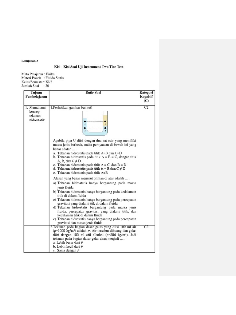 Contoh Soal Hots Fluida Statis. Video ini merupakan pembahasan fluida statis beserta sifat-sifatnya. Dibahas juga tentang massa jenis, hukum pascal, hidrostatis.