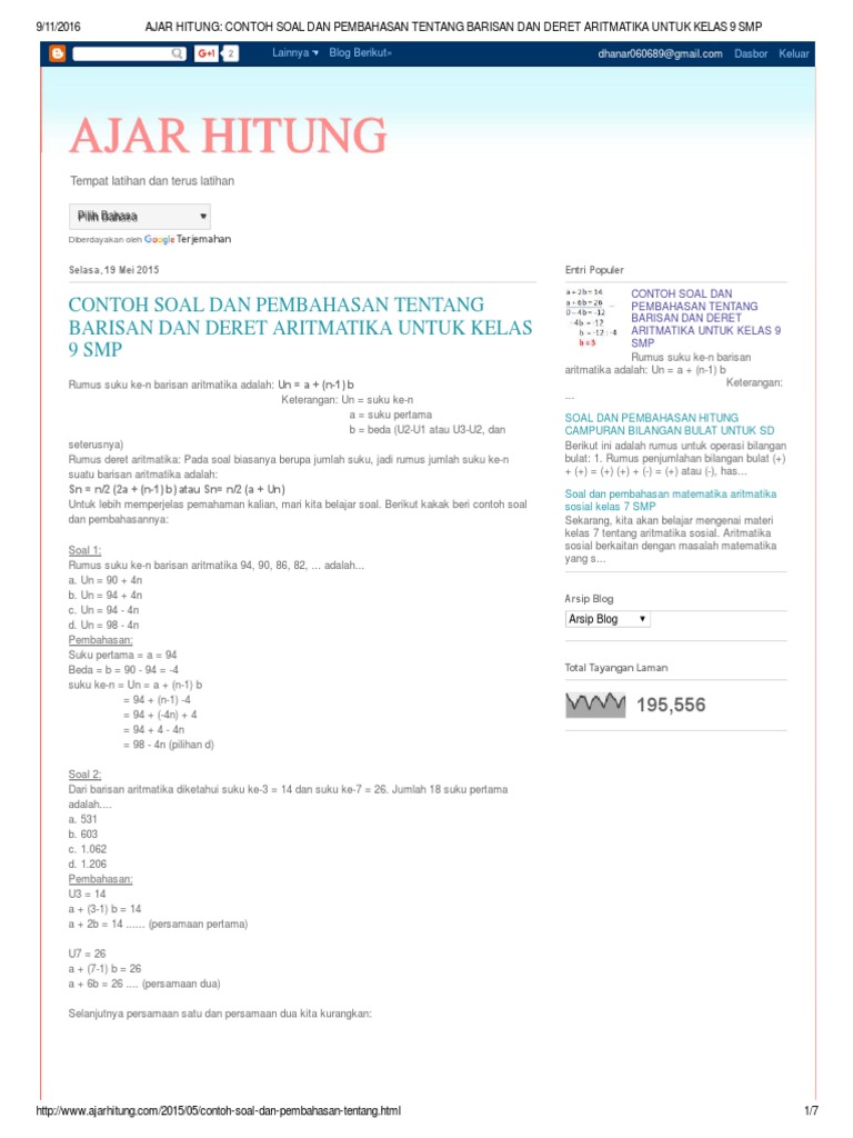 Contoh Soal Dan Pembahasan...Dan Deret Aritmatika Untuk ...